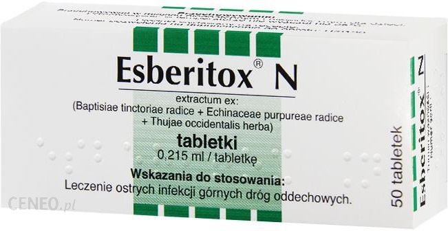 Działanie: Esberitox N to lek pochodzenia roślinnego zawierający wyciąg alkoholowo-wodny z ziela żywotnika zachodniego, korzenia jeżówki purpurowej i dzikiego indygo. Lek stosuje się w celu pobudzenia odporności organizmu.