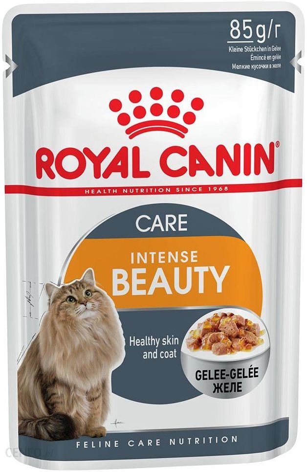 BeautyIntensew galaretceKoty dorosłe o wrażliwej skórze i sierściRozwiązanie żywieniowe opracowane specjalniedla kotów dorosłych o wrażliwej skórze i słabejjakości sierści, preferujących kawałki w galaretce.